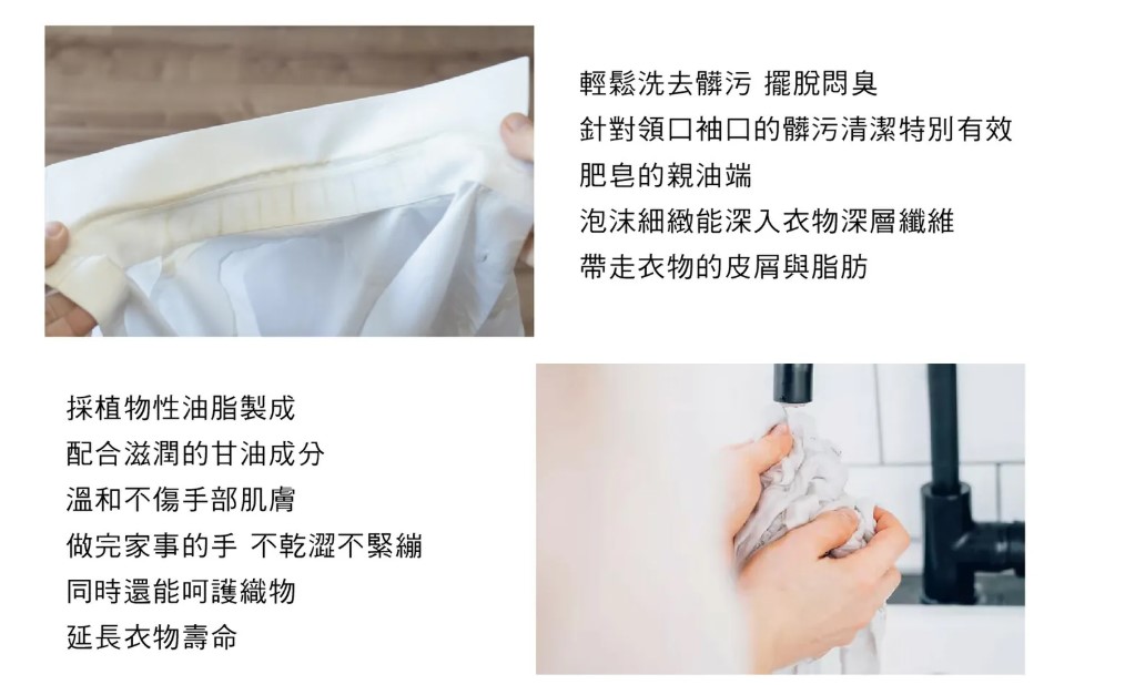不含有害化學成分,對衣物和手部肌膚友善溫和。