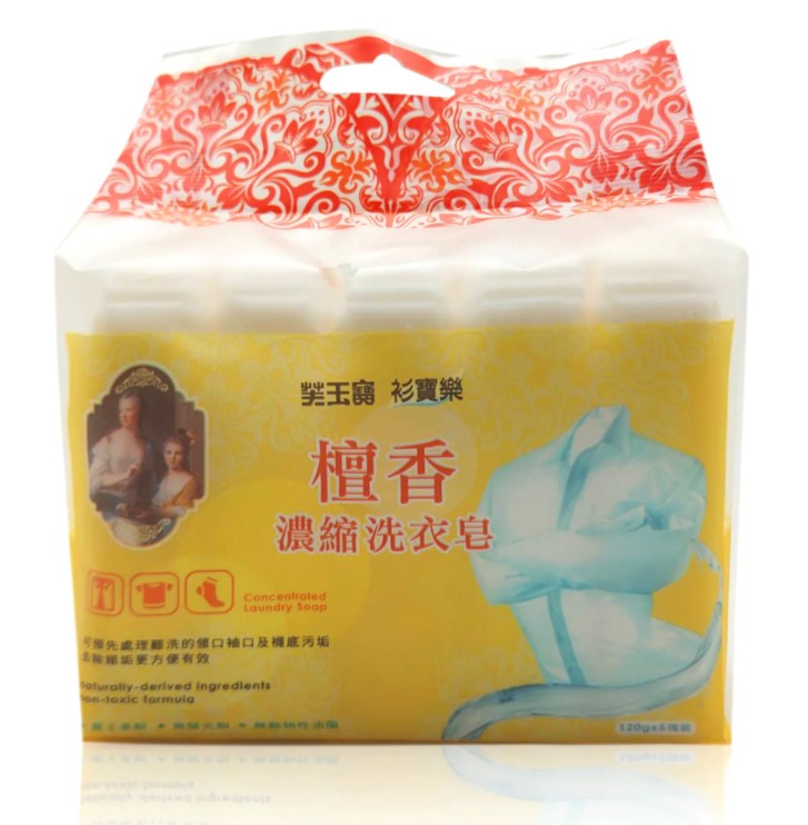 主要成分:棕櫚油酸鈉、水、棕櫚仁油酸鈉、碳酸鈉、檀香油、氯己定二葡糖酸鹽(抗菌)、氯化鈉、甘油、二氧化鈦、羥乙二磷酸。