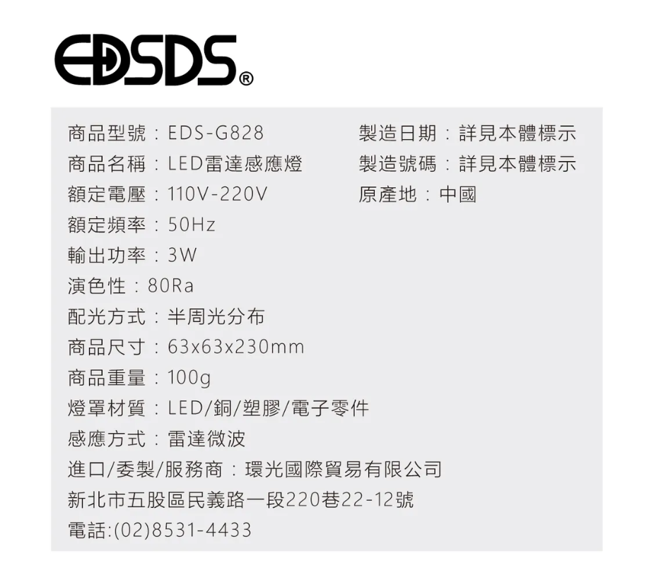 進口/委製/售後服務商:環光國際貿易有限公司