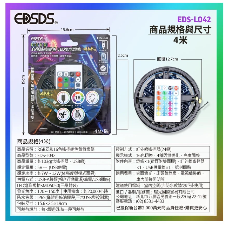 EDSL042 4M幻彩16色遙控LED燈條