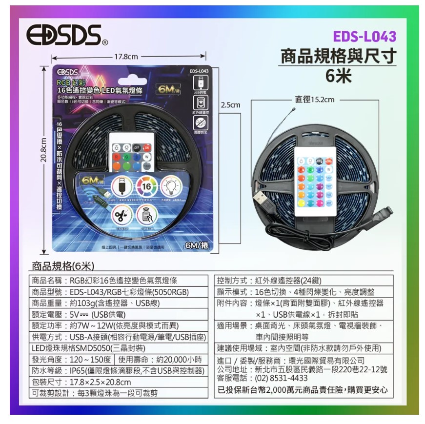 商品名稱:RGB幻彩16色遙控變色LED氣氛燈條(3/4/6米)