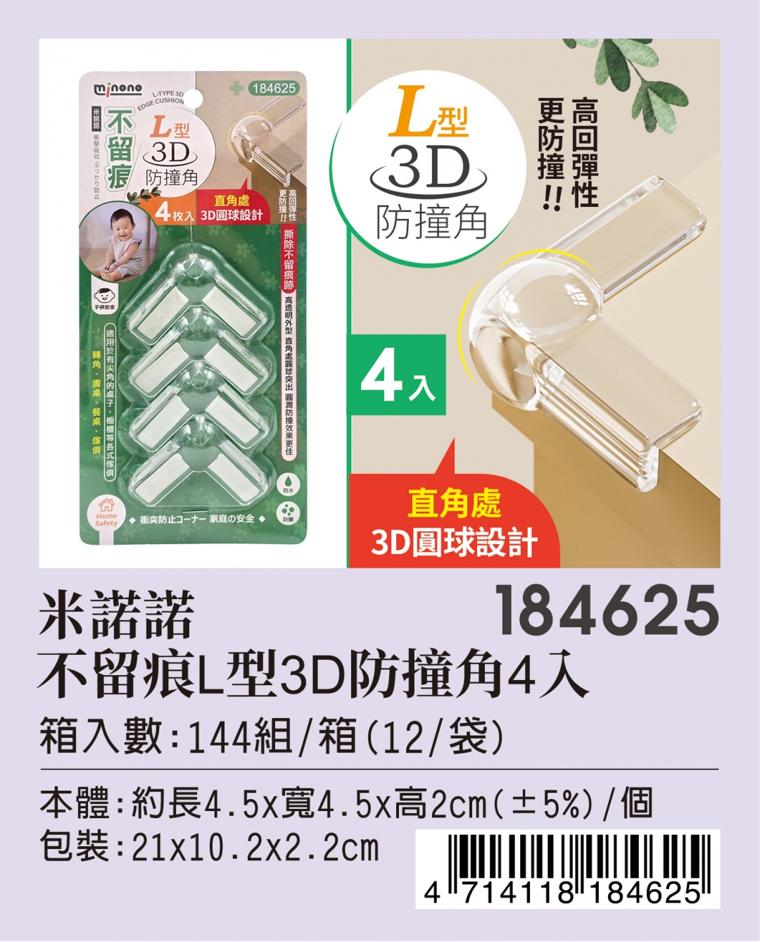 184625 4入不留痕L型3D防撞角