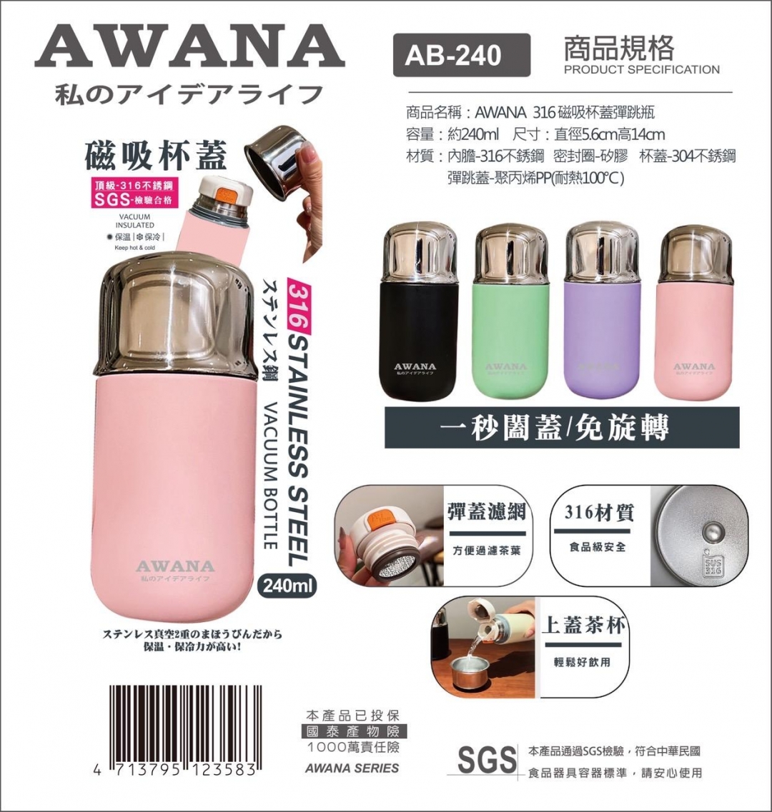 123583 316磁吸杯蓋彈跳瓶240ML