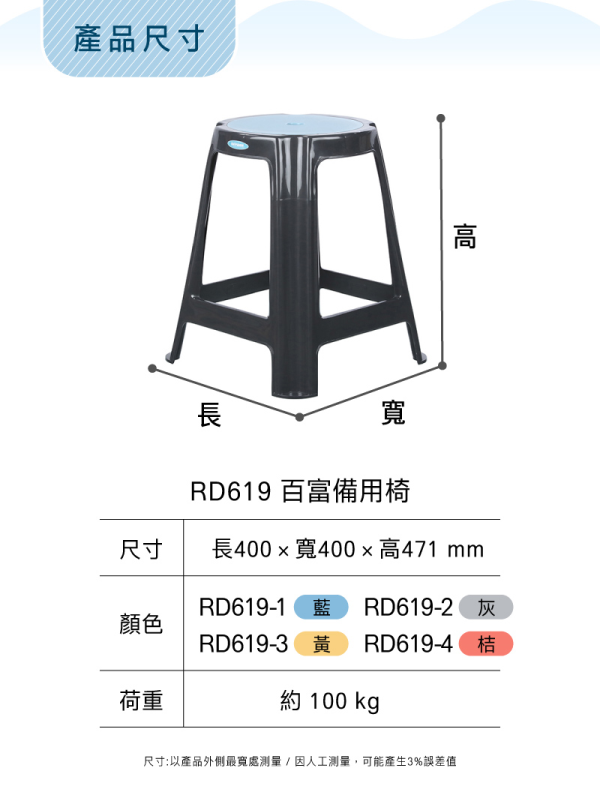 大椅面舒適好坐,椅腳結構強化,穩定堅固;椅面中間洞孔設計,方便拿取;可堆疊收納,節省空間