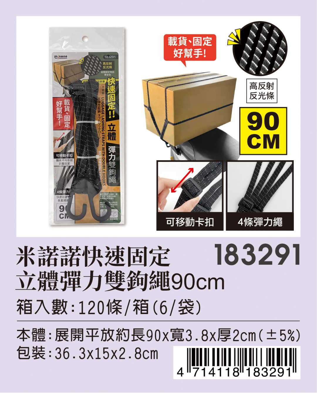 183291 固定立體彈力雙鉤繩90CM