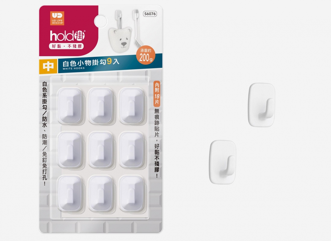 S6076 白色中9入小物掛勾