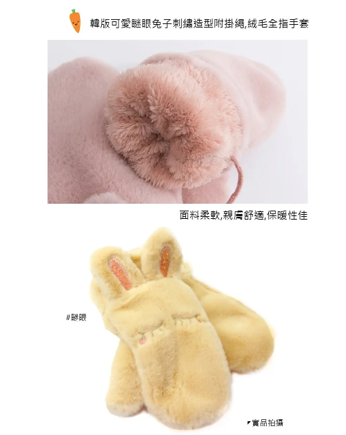 細緻絨毛質感,親膚、舒適、保暖、禦寒。 造型可愛、個性、百搭。 附掛繩使用方便,時尚且不易遺失。