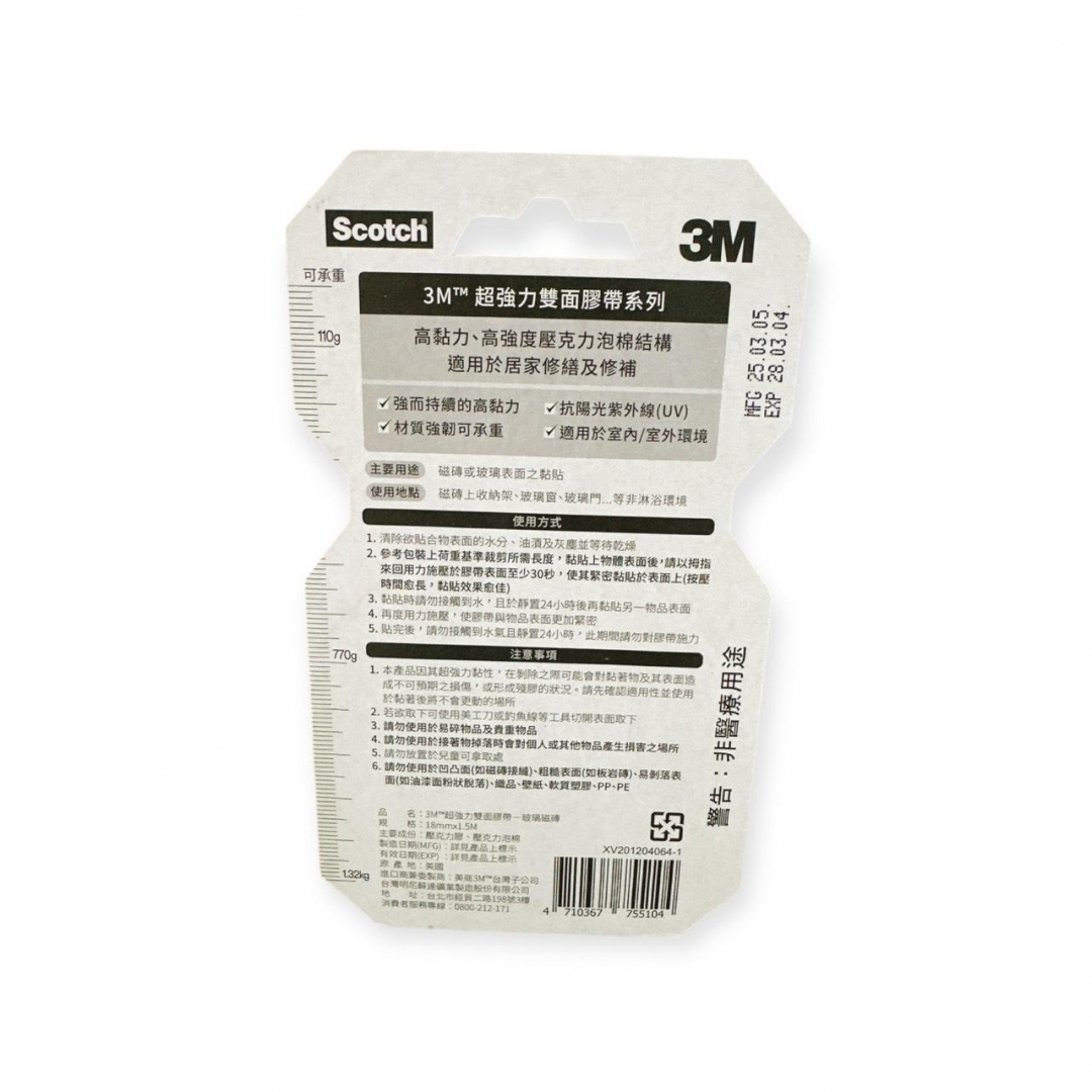 3M超強力雙面膠帶18MM*1.5M磁磚