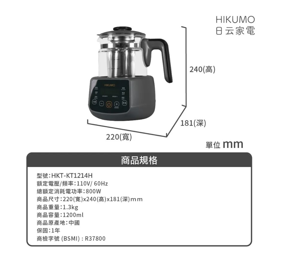 功能模式:溫奶、米糊、泡茶、慢煮、煮沸、除氯