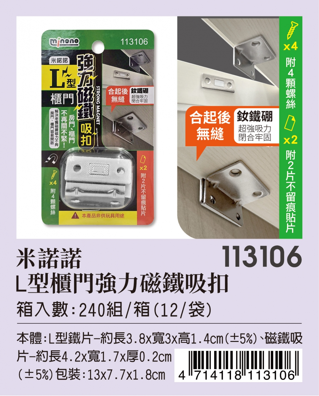 113106 L型櫃門強力磁鐵吸扣