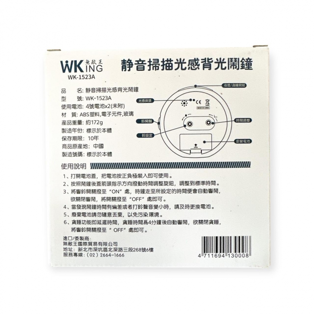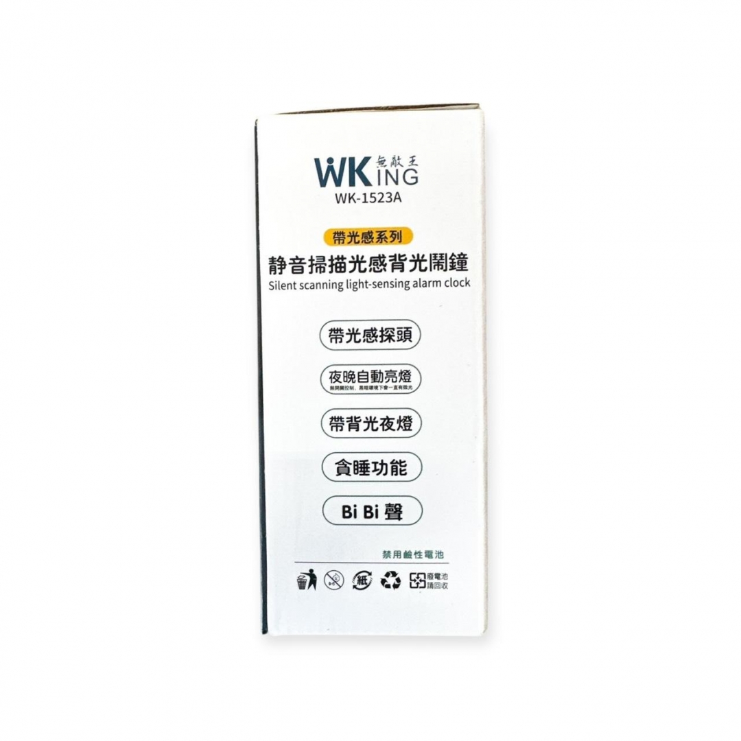 WK1523A 靜音掃描光感背光鬧鐘