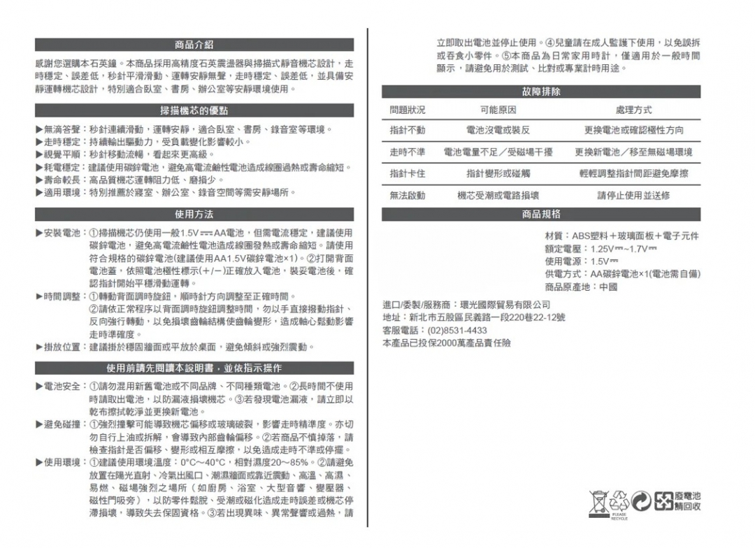 進口/委製/服務商:環光國際貿易有限公司