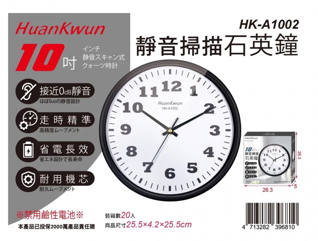 商品名稱:10 吋靜音掃描石英鐘