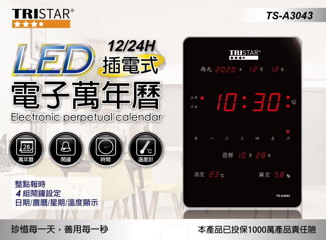 TSA3043LED插電式直式電子萬年曆