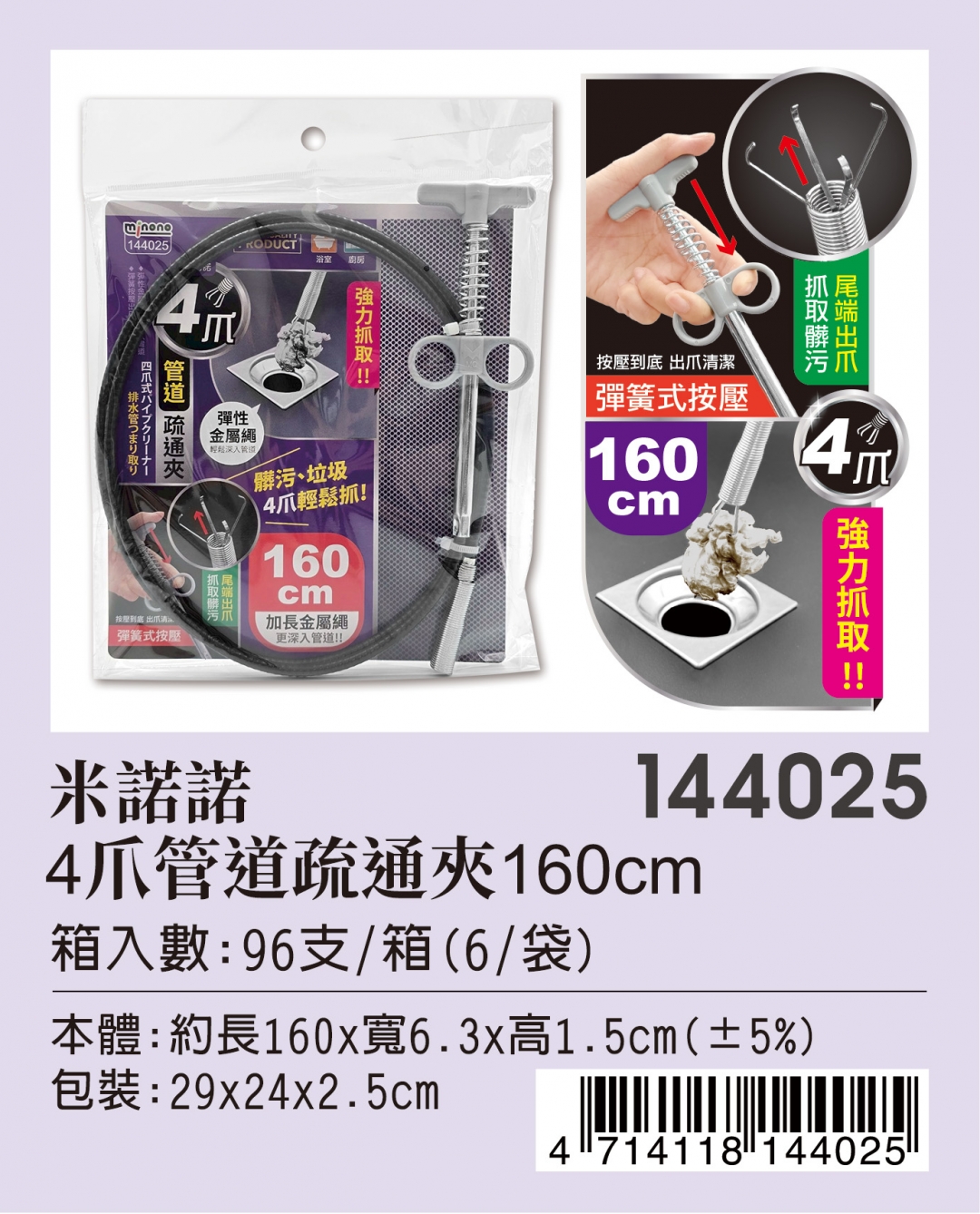 144025米諾諾4爪管道疏通夾160CM